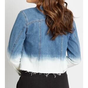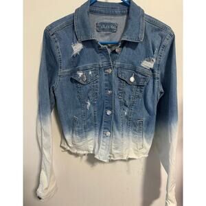 Maurices Cropped Blue Ombre’ distressed denim jacket.