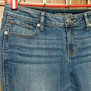 Maurices cuffed denim Capri pants, the bottoms are cut off and cuffed up, with 5 pockets that are fully functional. IN EUC, like new worn about 2 times, there's no holes or stains. They can be worn either cuffed up or at regular inseam. Measures approximately: 15 1/2" waist, 9" Rise, 26 1/2 regular inseam, 24" cuffed inseam. Deals for bundles. Trades are considered. π¦ Fast Shipping. Pickup is available. π Thanks for looking and have a great day!