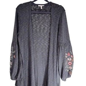 Maurices Dark Gray Cardigan with Floral Embroidery