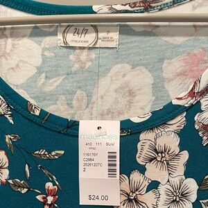 Chic sleeveless midi dress with floral pattern. Ideal for versatile styling. Super soft and lightweight. Braided sleeve detail accent, see photo. Dark green/teal background. Generous shoulder/pit drop.