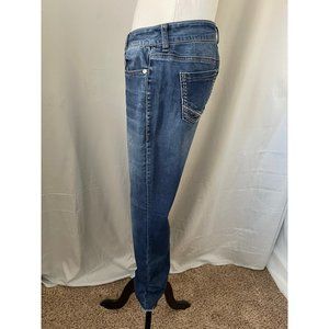 Maurices Dark/Medium-Wash Faded Lightly Distressed Straight Leg Raw Bottom Jeans. Size 5/6. Preowned, better than normal wear. No discoloration, fading, stains, rips or holes. Clean, smoke-free home.