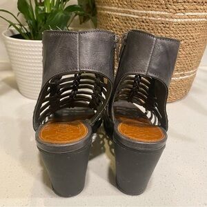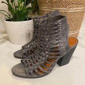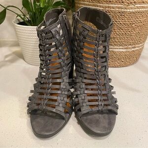 Maurices Delta Weave Cage Front Gray Open Toe Block Heel Ankle Boot Women’s