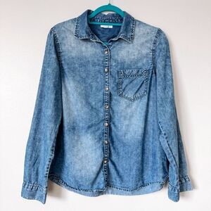 Maurices Denim Blue Lightweight Button Down Shirt Size Medium