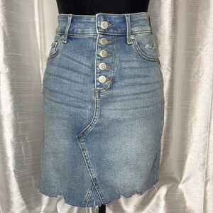 Maurices Distressed Faded Button Fly Denim Mini Skirt