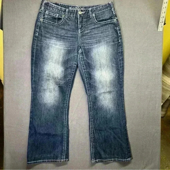 Maurices Denim Stretch Bootcut jeans Womens 7/8 X-Short Cute Blue Faded 1146