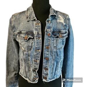 Maurices Distressed Cropped Denim Jean Jacket 99% Cotton 1% Spandex Size XS