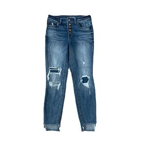 Maurice’s Distressed High Waisted Skinny Jeans with Fringe Bottom