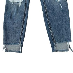 Women’s size 10 distressed jeans with fringed ankles. A cute, high waisted jean that adds flair to a look for girls’ night out or a hot date! These are pre-owned but in excellent condition. Please ask questions or message for an offer/bundle if you’re interested in adding this to your closet!