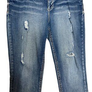 Maurices Distressed Jeans Embordered Denim Pants Woman's Size 13/14 Short