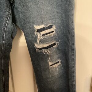 Distressed jeans by Maurices, size 14 regular. The distressing has material underneath, so no skin will show.