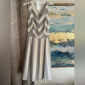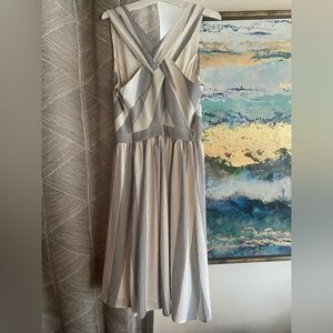 Maurices Dress Womens Size 8 Beige/Black Stripes Sleeveless Straps Back Lined