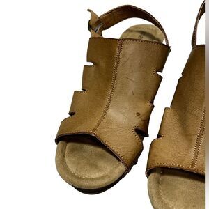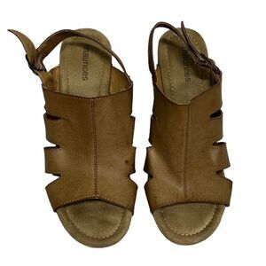 Maurice’s Eden Tan Faux Leather Open Toe Block Heels Sandals 7.5 Cutout Slits