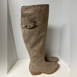 Maurices Emily Buckle Tall Riding Boot Faux Suede Taupe Equestrian size 10