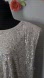 Beige gold sequin top with crew neck, padded extended shoulders, keyhole button back, elastic hem, and a relaxed fit. This shimmering blouse comes from my smoke-free, pet friendly home. Measurements are unstretched and approximate.