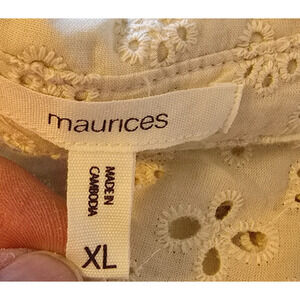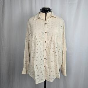Maurices Eyelet Button Down Blouse Women's XL Cream Long Sleeve