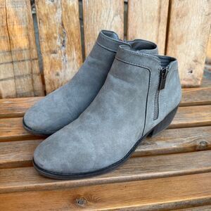 Maurices Faux Suede Grey Double Zipper Ankle Booties Boots Shoes