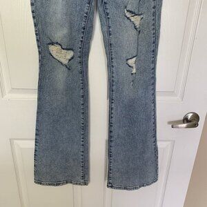 Maurices Flare Denim Flex High Rise Blue Jeans Size 10 XLong Distressed NWT