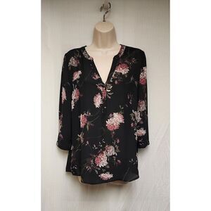 Maurices Floral 3/4 Sleeve Popover V Neck Sheer Chiffon Blouse Size Small
