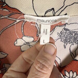 Maurice’s Floral Draw String Romper, Sz L, Rust Orange & Cream, Short Sleeves