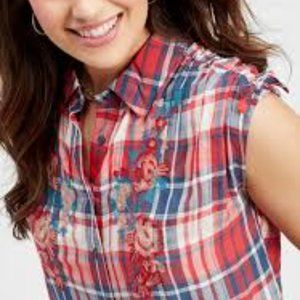 Maurices Floral Embroidery Button Down shirt size M