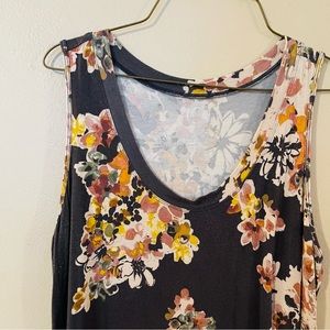 Good used condition. Gray main color with multicolored floral print. Stretchy knit material.