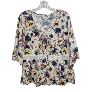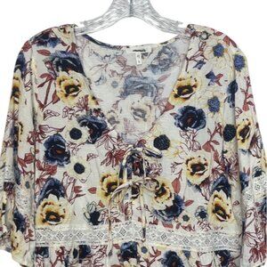 Maurices Floral Print Boho Top Shirt Womens Small New WOT Lace Detail