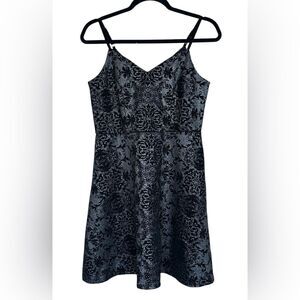 Maurices Floral Velvet Flocked Skater Dress. NWT. Black/Gray. Size Medium.