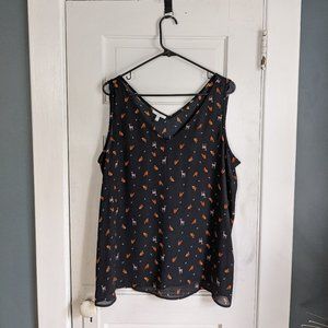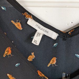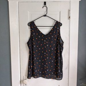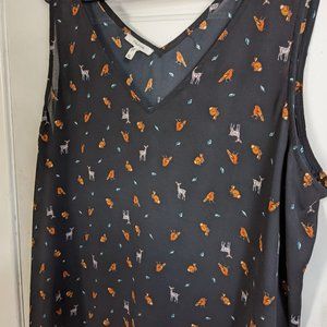 Pre-owned blouse in great condition! Features a deep v-neck in the front and back, as well as just the most ADORABLE forest animals. The fabric is semi-sheer and unlined.