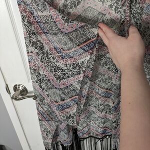 Women, Woman, Women's, Cardigan, Sweater, Shawl, Floral, Flowers, Floral Print, Casual, Versatile, Feminine, Femme, Girly, Flirty, Layers, Layering Piece, Kimono, Layer, Fall, Autumn, Autumnal, Spring, Summer, Open Front, Open Cardigan, Open Shawl, Coverup, Lightweight, Comfy, Comfortable, Sheer, Multicolor, EUC, Pretty, Short Sleeve, Flowy, Boho, Bohemian, Hippie, Longline, Long, Swim Coverup, Beach, Beachy, Pool, Swimwear, Coverup, Grey, Red, Blue, Maurices, Plus Size, Size 2X, Paisley, Chevron, Busy, Pattern, Geometric, Size 3X, Polyester, Size 2/3, Maurices +, RN 51783, Getting Ready Shawl, Boho Bridal Morning, As Seen in Cosmopolitan