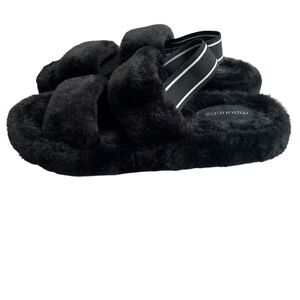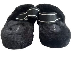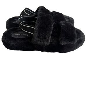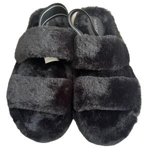 Maurices Fuzzy Slippers size 8M Black Slingback Strappy Faux Fur Shoes