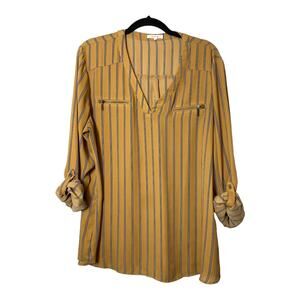 Maurices Goldenrod yellow Blouse Long Sleeve Top Striped XL Zipper Roll Tab