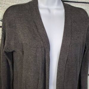 This versatile gray open-front cardigan from Maurices is perfect for layering year-round. Features a lightweight knit with ribbed details and long sleeves. Great for casual or office wear.