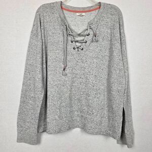 Maurices Gray Speckled Lace Up Pullover Sweater L