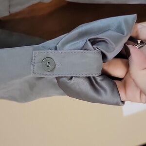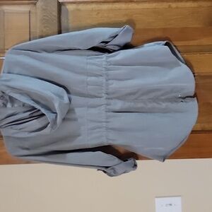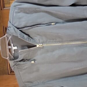 Stylish utility jacket with adjustable waist. Features front zipper and pockets. Perfect for layering.
