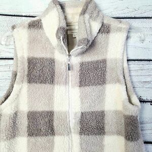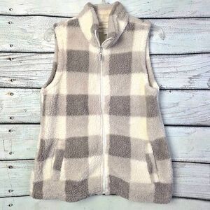 Maurices Gray White Buffalo Check Sherpa Vest M