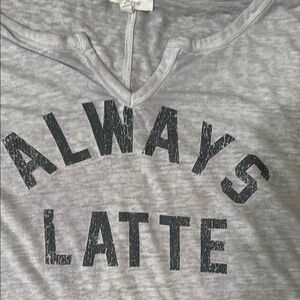 This Maurices top showcases a heather gray base with vibrant pink accents on the shoulders and sleeves, offering a sporty and retro vibe. The 'ALWAYS LATTE' print on the front adds a fun element to this relaxed-fit tee, made from a soft cotton blend for all-day comfort.