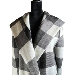 Maurices Gray and White Checker Sweater Jacket Size Small Blazer Hooded