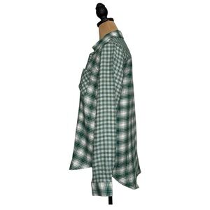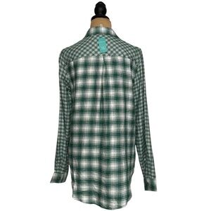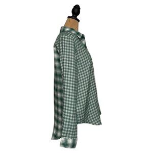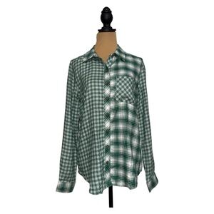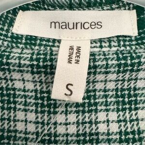 Maurices Green Button Down Shirt Asymmetrical Plaid Design Size S