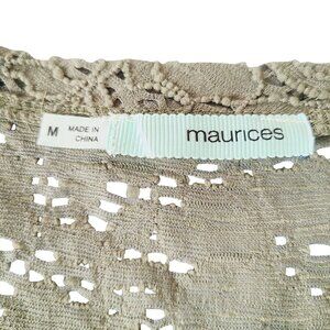 Maurices Green Lace Top Size Medium 3/4 sleeve Round Neck Guipure/Venice Lace