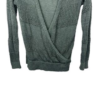 Maurices Green Open Knit Textured V Surplice Neck Sweater XS