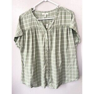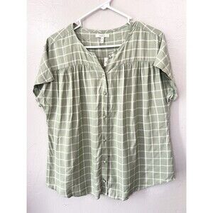 Maurices Green Plaid Woven Relaxed Fit Short Sleeve Button Down Size Medium Boxy