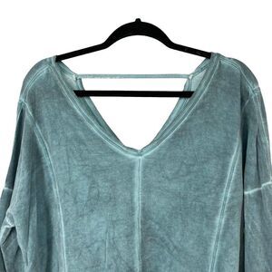 Maurices Green Casual Top Scooped V Neck Asymmetric Tapered Hem Long Sleeve Stonewashed Casual Lounge
