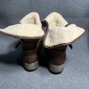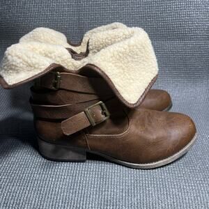Maurices Helen Foldover Boots Womens Size 9M Brown Faux Leather Stacked Heel