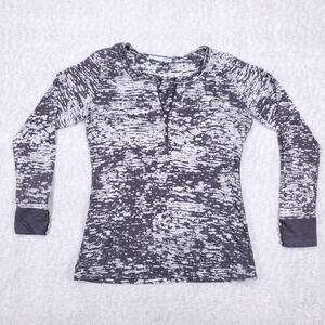 Maurices Henley Top Womens L Gray Sheer Long Sleeve Rhinestone Stylish Layering