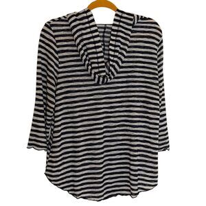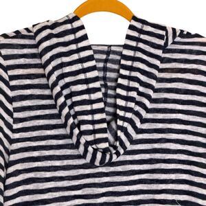 Maurices Hooded Knit Top Blouse Shirt Stripe Black White L bv