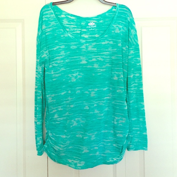 Maurices InMotion activewear long sleeve shirt. Color sea green, Size medium. Super comfy, worn once! Fits true to size. Length is on the longer side so it goes perfect with yoga pants.
