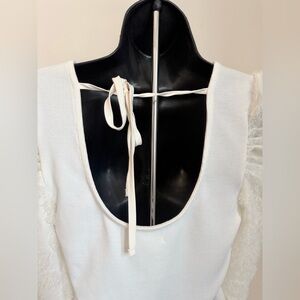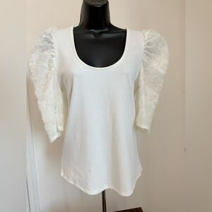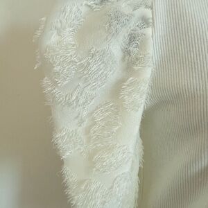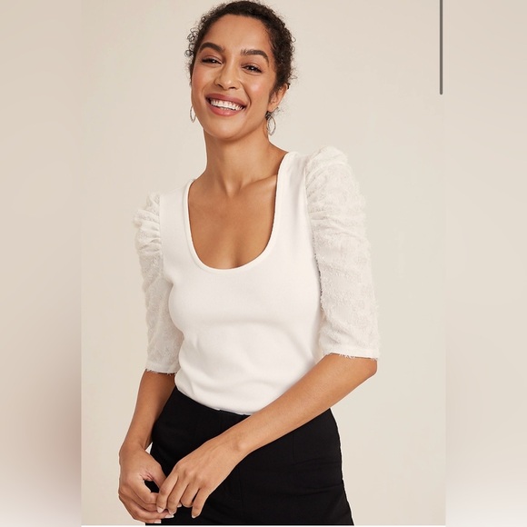 Elegant Maurices Women's Ribbed Puff Eyelash short Sleeves open back with self tie detail in Cream. NWT