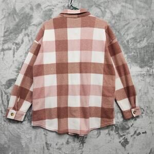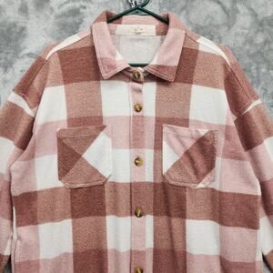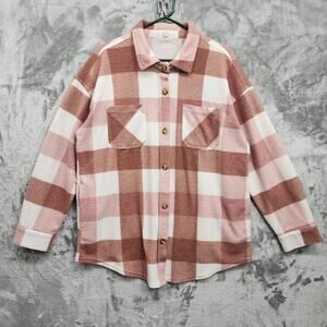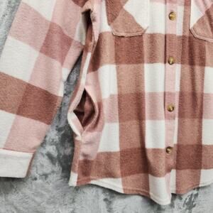 Maurices Jacket Womens L Pink Cream Vintage Plaid Fleece Shacket Pockets Casual