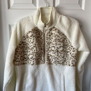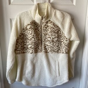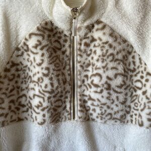 Maurices Jacket Women’s Size Small Faux Fur Animal Print 1/2 Zip Pullover Pocket
