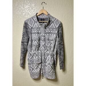 Maurices Jacket XL Full Zip Grey Multi Textured Pockets Hidden Drawstring